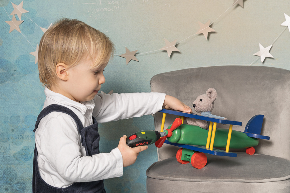 Mit seinem kleinen Akkuschrauber hat er sich dann auch noch um die Wartung des kleinen Flugzeugs gekümmert, damit die Maus sicher fliegen kann. ( Achtung Werbung durch Markenerkennung – unbezahlt)